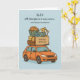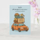 Send them off to college or university with a smile using this playful back to school card. The design features an orange car piled high with dorm essentials, laundry baskets, and lamps, with a customizable name at the top and school name on the box in the stack. The fun message “off you go, full of hopes, dreams – and half your bedroom!” captures the excitement and chaos of moving day. Perfect for wishing any student good luck as they start this new chapter with love, humor, and encouragement.