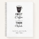 Modern contemporary typography "first coffee then work" and a doodled monogrammed latte mug (on both sides) making an uplifting motivational quote notebook or personal journal. +++++++++++++ Easy to personalize with your name, text and monogram name initials.