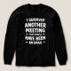 Make a witty statement at the office or from your home desk with this "I Survived Another Meeting That Should Have Been An Email" women's long sleeve tee. Featuring a crisp white typographic design on a classic black background, this shirt perfectly captures the relatable struggle of corporate life. Made from soft, breathable fabric, it offers a comfortable fit for chilly office environments or casual Fridays. A brilliant and sarcastic gift for coworkers, managers, or your favorite office bestie who truly values productivity over long meetings