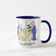 Office Worker Has Come to Someone's Attention. Funny Office worker cartoon. Man at his desk in an office is told that apparently he has come to someone's attention. Gift for office worker. Blue and white mug.
