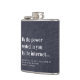 Well made flask, a little better than I had expected. Flask came in clear plastic box which gave it a nice presentation when I took it out of the zazzle packaging. Image is not printed on flask but on sticker. Don't know how this will hold up I haven't used it yet. This would make a Great gift! I plan to purchase more for friends! Cheers. I thought a little brighter than computer. Very crisp, writing wasn't