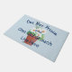 Welcome your guests with this whimsical door mat featuring the words "one nice person and one old grouch live here" and let them figure out who's who! My watercolor painted potted white daisy flowers in a terra cotta pot container with a light sky blue colored background design add playful cheer. If you need the larger version it is available in my store.