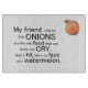 Cutting board for those with a wicked sense of humor - this is definitely a "laugh out loud" one! "My friend told me that onions are the only food that can make you cry. Until I hit him in the face with a watermelon." As well as being funny, the board is also customizable - so you can add your own text, or a name if you wish.