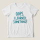 A humorous and motivational kids' t-shirt featuring the phrase "OOPS, I LEARNED SOMETHING!" in a bold, hand-drawn, sketchy teal font. This cheeky quote is perfect for anyone who embraces mistakes as part of the learning process. Ideal for students and teachers :)