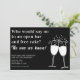 Funny black and white Save the Date card with Who Would Say No To An Open Bar and Free Cake? No One We Know! Add names, location and your special date to make sure people are ready to celebrate with you!