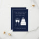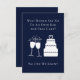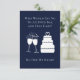 Funny navy blue and white Save the Date card with Who Would Say No To An Open Bar and Free Cake? No One We Know! Add names, city, state and your special date to make sure people are ready to celebrate with you!