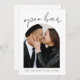 Kick off the kind of wedding your guests will actually look forward to—this funny “Open Bar” photo save the date postcard lets them know the party is coming, and yes, there will be drinks. The minimalist black-and-white design keeps it sleek and modern, while the cheeky “Open Bar (and we’re getting married)” text adds playful personality. Fully customizable and printed on premium cardstock, this postcard saves the date—and sets the tone.