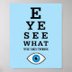 Funny optometry Snellen eye chart design says: Eye See What You Did There. This poster print makes a great gift idea for the eye doctor, optician, ophthalmologist or optometrist.