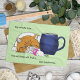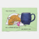 An exhausted orange cat lies flat beside an oversized blue coffee mug, patiently waiting for the caffeine to do its magic. With the caption “Any minute now… the caffeine will kick in… any minute now,” this humorous illustration perfectly captures slow mornings, coffee dependence, and classic feline expression. Ideal for cat lovers, coffee addicts, and anyone who understands the struggle before the first cup.