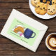 An exhausted orange cat lies flat beside an oversized blue coffee mug, patiently waiting for the caffeine to do its magic. With the caption “Any minute now… the caffeine will kick in… any minute now,” this humorous illustration perfectly captures slow mornings, coffee dependence, and classic feline expression. Ideal for cat lovers, coffee addicts, and anyone who understands the struggle before the first cup.