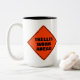 Funny orange trellis work ahead caution road sign Two-Tone coffee mug