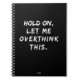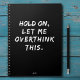 Funny "Hold on, Let me overthink this" notebook with personalized name or monogram. Black background with white text.
