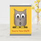 Funny Owl Over The Hill What a Hoot Birthday Greeting Card. Customize the front or inside wording or keep as is. This adorable, cartoon gray owl has big eyes, a cute nose and is resting on a branch. His eyes and mouth are open in complete surprise and amazement. You're How Old is the front expression, and inside greeting is What A Hoot - Happy Birthday. For anyone over the hill, or just for fun.