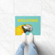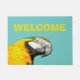 Funny portrait photography of a parrot on a teal background, which you can personalize with your own text.