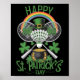 Funny Patricks Day Badminton Costume Four-leaf Clo Poster
