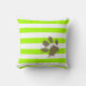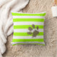 Funny Pawprint on Electric Lime Green Stripes Throw Pillow