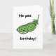 This birthday card features an adorable and playful design, perfect for bringing a smile to the recipient's face. The front showcases a cute illustration of two peas in a pod with happy expressions, accompanied by the punny text "Ha-pea birthday!" in a cheerful font. Inside, there is space for a personalized message, allowing you to add your own special greeting. Ideal for anyone who enjoys a good pun and a bit of humor, this card combines fun and personalization to make the birthday celebration even more delightful.