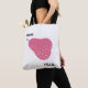 Playful and punny: a bright pink pear with speckled seeds and the cheeky caption “From: Pear.” The bold pop-art look stands out on natural canvas.
