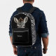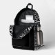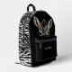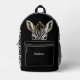 This cute backpack has the image of an adorable striped zebra peeking over a wall. The sides and top have a black and white zebra stripe pattern, while the solid black pocket has text in silver. You can place your name in the text field, or maybe think of something funny to say about the zebra's predicament. It's up to you!