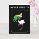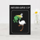 Send Motivational Cards to Family, Friends, Co Workers, or anyone you want to Inspire. This card has the Saying Never give up with a pelican swallowing a frog, but the frog has his hands around the frogs throat.