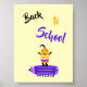 Funny pencil and rubber with text BACK TO SCHOOL on yellow background