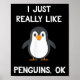 Funny Penguin Quote I Just Really Like Penguins Ok Poster