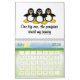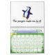 Funny Penguin Calendar. Each page has a different image / cartoon of penguins with funny sayings. Guaranteed to put a smile on your face and make you laugh each month of the year. The Text can be changed / customized. So go ahead penguin lovers, personalize a calendar which you will enjoy all year round.