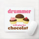 Drummer - Will Play For Chocolate design has cupcake logo and funny drummer slogan. Great gift or stocking stuffer for percussionists and drumline members.
