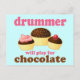 Drummer - Will Play For Chocolate design has cupcake logo and funny drummer slogan. Great gift or stocking stuffer for percussionists and drumline members.