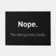 Let your doormat do the talking with this bold and funny "Nope." welcome mat! Perfect for those who love a little sarcasm, this doormat playfully sets the tone for visitors before they even knock. Featuring a customizable placeholder for your family name, it adds a personal touch while making it clear that unexpected guests may want to think twice. Great for introverts, humor lovers, or anyone who appreciates a little privacy with a side of wit. Perfect for front doors, porches, and entryways—because sometimes, the answer is just NOPE!