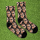Funny personalized face socks with your own photo. Upload a cutout of the face with a transparent background and it will automatically be replicated all over the socks, on both sides. To make the cut-out, you can download any mobile or computer app, use the program named Canva or Photoshop.