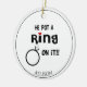 Funny Personalized He put a Ring on it Ceramic Orn Ornament