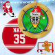 Funny Personalized Hockey Christmas Ornaments with YOUR NAME and Jersey NUMBER or Your Text (name and number shows up on the back too) or Delete Text. Hockey Mask with Santa Hat and Hockey Sticks crossed on bright green and gold hockey ornament. You can change the red and white background and text colors on the back to your hockey team colors.