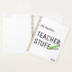 This cool modern personalized planner features the text "TEACHER STUFF", a pencil and personalized with the teachers name and year.