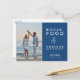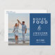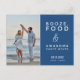 Save the date postcards in a fun design for the couple who can't wait to celebrate with their family and friends. Blue and white typography design with your photo that reads: Booze, food and awesome dance moves. Customize the front side of the postcard with your photo, names and wedding date. Add your return address and additional wedding details to the backside of the postcard.