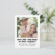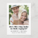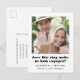 Funny engagement and save the date announcement postcard with a photo of the two of you and the engagement ring and "does this ring make us look engaged" in bold modern typography. On the front, add your first names and wedding date and location. On the reverse, customize your save the date details and add your names in a signature-like script.