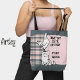 Funny Phrase Cat and Chicken Pink Plaid Tote Bag