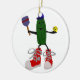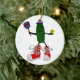 Funny Pickle Holding Pickleball and Paddle Ceramic Ornament