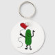 Funny Pickle is Holding Red Heart Balloon Keychain