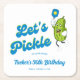 Fun drink coasters for your next pickleball party. Design features a funny cartoon pickle holding a Pickleball Paddle and a cool font that reads "Let's Pickle" Easily add your custom text and change the background color. Great for a pickleball birthday party, pickleball weekend gathering, getaway, pickleball club party or everyday fun. Pickleball - the best sport ever!!