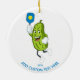 Funny PIckle Playing Pickleball Custom Year Text Ceramic Ornament