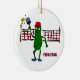 Funny Pickle Playing Pickleball with Net Art Ceramic Ornament