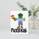 Funny green pickle holding red pickleball paddle and yellow ball. Can also add custom text when ordering.
