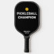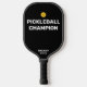Surely you know someone who deserves this funny pickleball paddle that reads "Pickleball Champion". Design features Bold White text that's set against a black background and is highlighted by a yellow pickleball (you can easily change the background color). Add 2 lines of custom text to personalize - club name, location, player's name, phone number, etc. Or delete. Makes a perfect gift for any pickleball player/baller - dads, moms, friends, kids, grandparents, pickleball partners, coaches, pickleball club members - both beginners and experienced players alike are sure to get a laugh with this one of a kind paddle.