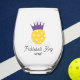 A super fun wine glass featuring a pickleball with a purple crown and 2 lines of personalized text. Perfect as a club or tournament award, gift for your pickleball friend, drink ware for apres pickleball gatherings and just everyday pickleball fun!