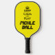 Funny pickleball paddles - Keep calm and play on. Cool personalized Christmas or Birthday gift idea for pickleball lovers. Create unique paddles for athletic player, fan, sports coach, team, dad, friend, husband, boyfriend, coworker, boy, boss, uncle, grandpa etc. Personalize with your own name or cute quote. Professional quality game rackets for sporty men, women and kids. Yellow and blue or custom colors. White, tan or black grip / trim options.