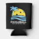 Keep your beverage cool with this funny can cooler featuring a pickleball "sun" framed by a tropical palm tree and blue ocean waves. Makes an awesome gift for pickleball players, coaches, club organizers - or hand it out as a prize at your next tournament.