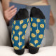This fun Halloween socks are bright and colorful. The small print is crisp and shows the fun details. The softness of the socks feels nice on my feet and ankles. .
