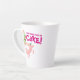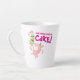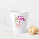A happy pig on a latte mug. Use "Personalize this template" to tweak the "Coffee, your daily excuse for CAKE!" text and create a unique, customized gift; text changes are reflected on both sides. A stylish mug for a cake and coffee lover, featuring a gleeful pig, beneath a teetering layer cake with lashings of green icing and topped with pink candles.