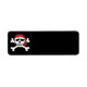 Goofy cartoon skull with missing teeth wearing red bandana, eye patch and golden earring, and crossbones.